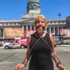 Nancy Pazos protesta en el Congreso contra la reforma laboral en Argentina