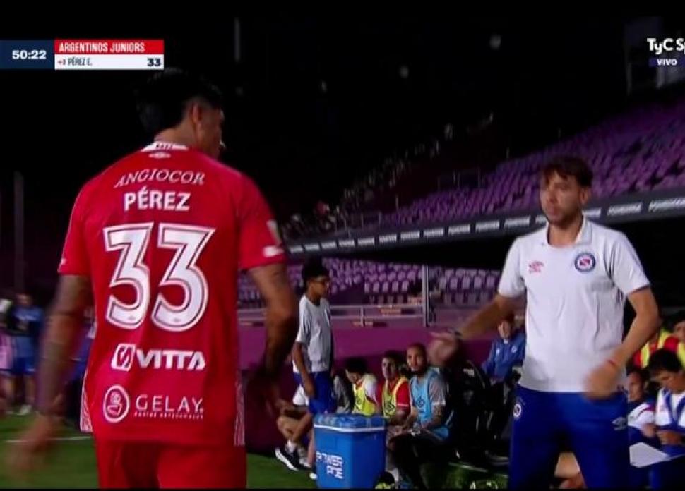 El mediocampista Enzo Pérez debutó con Argentinos Juniors, pero una molestia física alteró su rendimiento y provocó su enojo al ser sustituido.