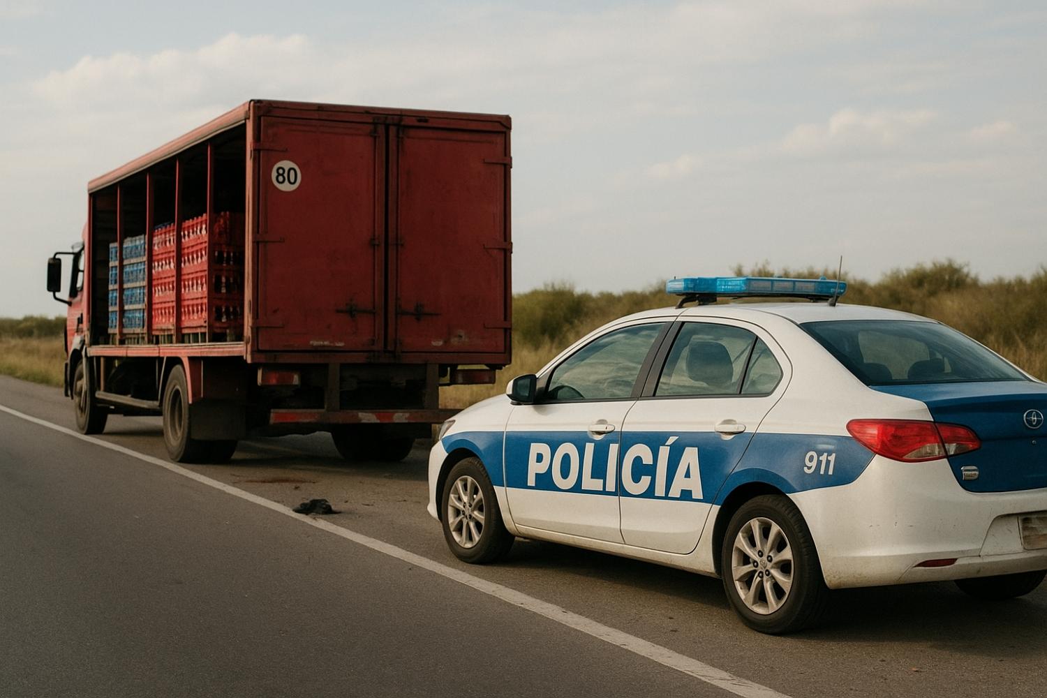 Los uniformados se acercaron rápidamente a la víctima, quien se encontraba en estado de nerviosismo extremo al borde de la carretera, junto a un camión Iveco cargado con botellas de gaseosas. El camionero relató que había sido asaltado por un grupo de delincuentes armados.