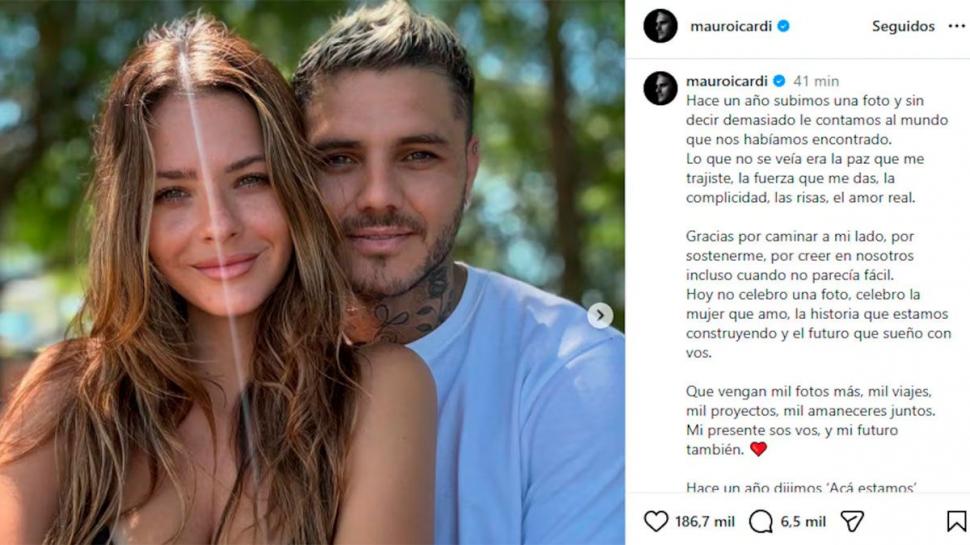 Mauro Icardi ha compartido este viernes un emotivo mensaje en su cuenta de Instagram con motivo del primer aniversario de su relación con la reconocida actriz China Suárez.