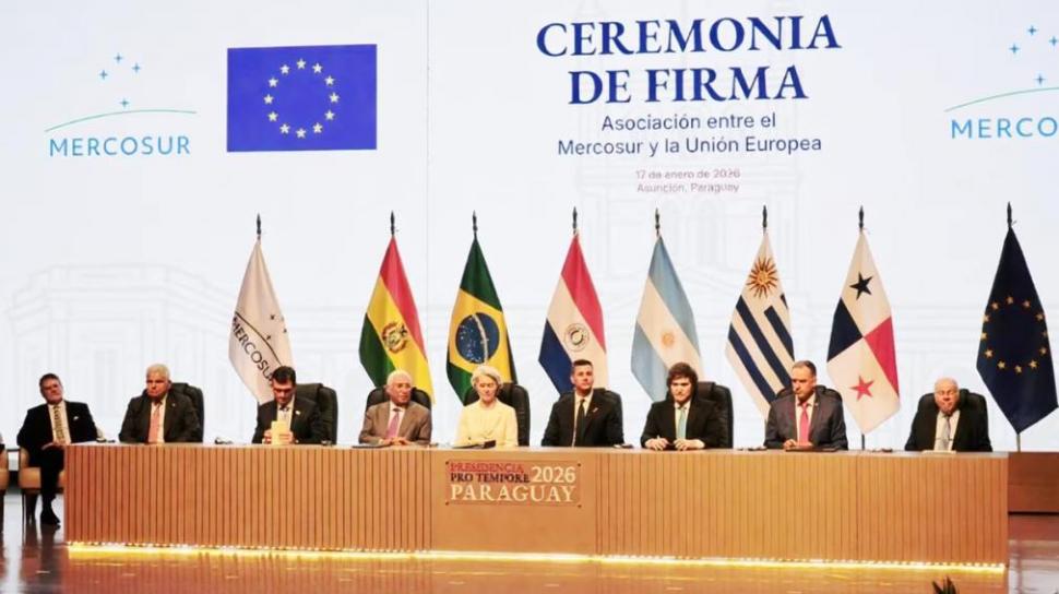 El evento contó con la presencia del presidente Javier Milei y sus homólogos Rodrigo Paz (Bolivia), Yamandú Orsi (Uruguay) y Santiago Peña (Paraguay), quien actuó como anfitrión en su calidad de presidente pro tempore del Mercosur, lo que subraya la importancia de esta firma en el contexto regional.