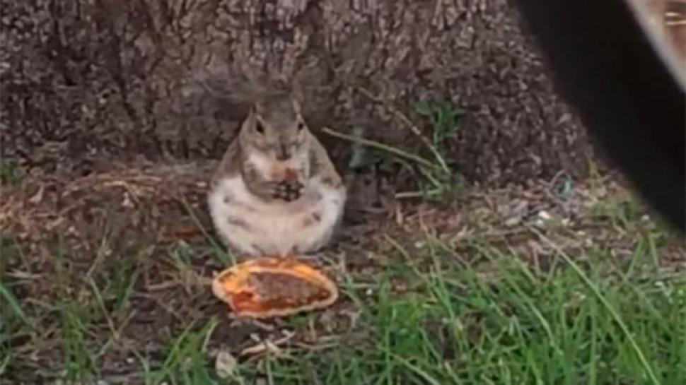 El tamaño de la ardilla, si no supera el de su manjar, desde luego puede compararse con él. El animalillo organizó su pícnic justo al lado de uno de los locales de la cadena en la ciudad de Venice (Florida, EE.UU.), según reportan varios medios.