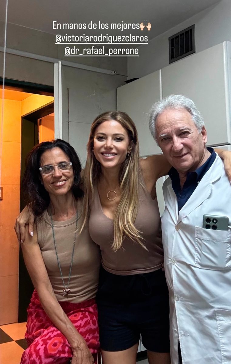 La modelo también compartió imágenes del momento previo a la intervención, en compañía de su fonoaudióloga y el médico cirujano, a quienes agradeció públicamente por su apoyo. En una de las fotografías, se la observa junto a ambos profesionales, resaltando que estaba “en manos de los mejores”, lo que subraya la importancia del apoyo profesional en situaciones de salud delicadas.