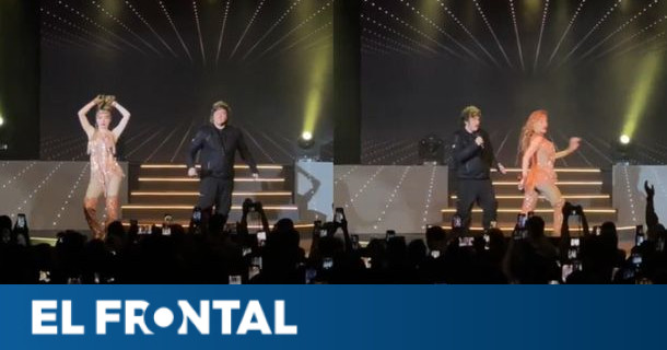 Desafiando todas las convenciones, el Presidente no permaneció en su asiento entre el público. En un giro inesperado, ascendió al escenario junto a la talentosa imitadora y se atrevió a interpretar un fragmento del emblemático tema de Ratones Paranoicos, El Rock del Gato. Este momento desató una oleada de aplausos y gritos de júbilo, con numerosos asistentes levantando sus teléfonos para capturar la escena.