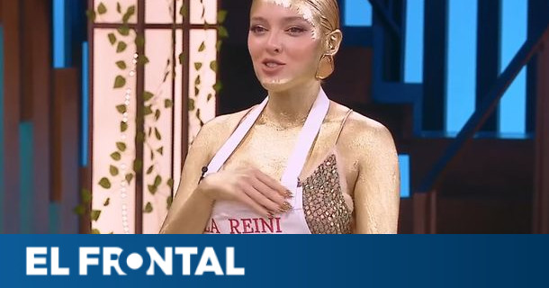 La influencer sorprendió al jurado de Masterchef Celebrity con un impactante look dorado y comestible.