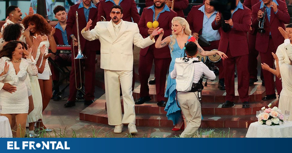 El momento culminante llegó con un popurrí de clásicos puertorriqueños, donde el cantante expresó: “Mi nombre es Benito y hoy estoy aquí en el Super Bowl porque nunca dejé de creer en mí”, justo antes de que las cámaras captaran a una pareja en plena ceremonia de bodas y a Lady Gaga ejecutando una versión salsa de “Die with Smile”.