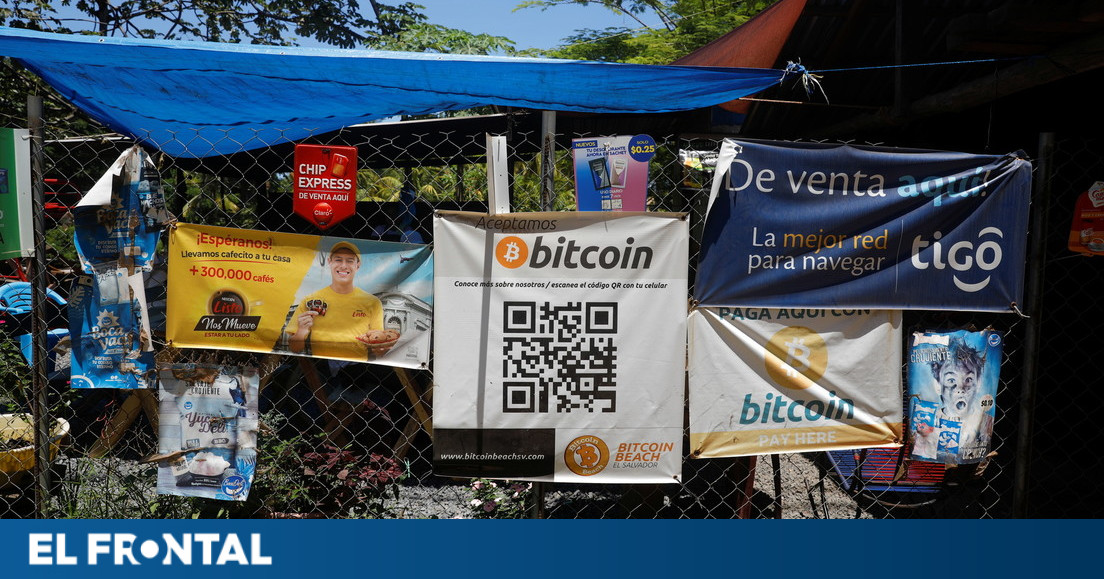 Pancartas de bitcóin en un restaurante en Chiltiupán, El Salvador.