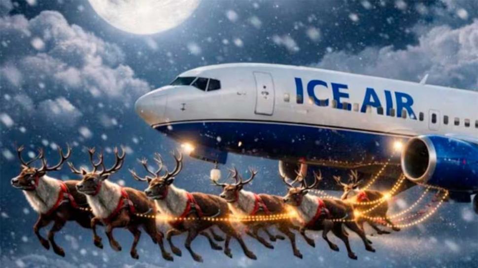 Un día anterior, la cuenta oficial del servicio de inmigración y control de aduanas de Estados Unidos, conocido como ICE, divulgó una imagen de un avión de marca “ICE Air” arrastrado por renos, junto con un mensaje que contenía un juego de palabras en inglés: “EXTRANJEROS ILEGALES: eviten ICE Air y váyanse a casa esta Navidad usando la aplicación CBP Home”.