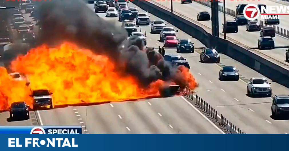 Imágenes aéreas obtenidas posteriormente evidenciaron la devastación del vehículo, el cual quedó consumido por las llamas. En estos registros visuales se puede apreciar que el automóvil ya ardía en fuego cuando, de manera abrupta, ocurrió una explosión que generó un efecto de “muro de fuego” sobre la autopista.