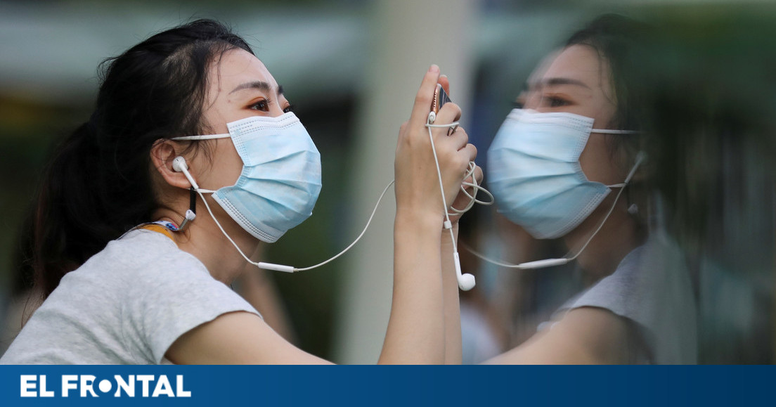 Imagen ilustrativa / Una mujer con mascarilla mira su teléfono móvil en medio del brote del covid-19 en Bangkok, Tailandia